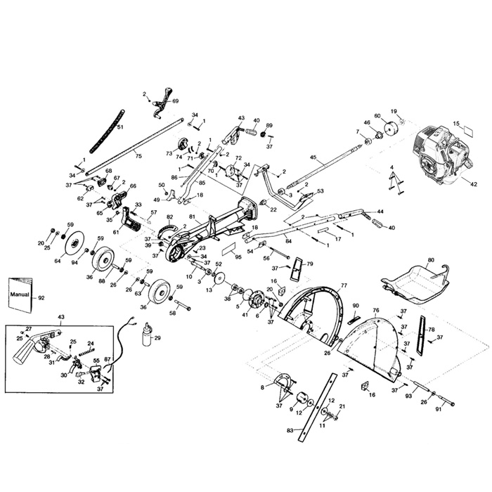 | 43 | 43960 | Pro Handle Throttle Assembly | 90 | 44431 | Golf Edger Sight Piece |
